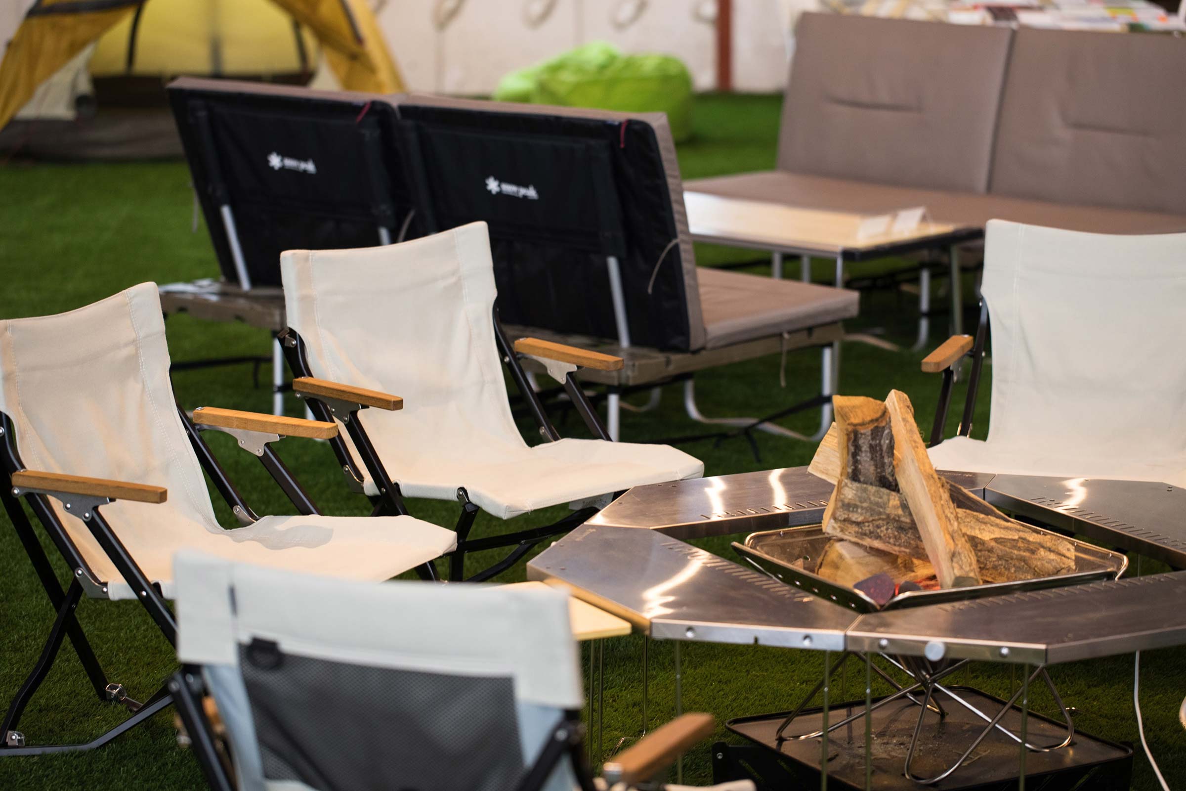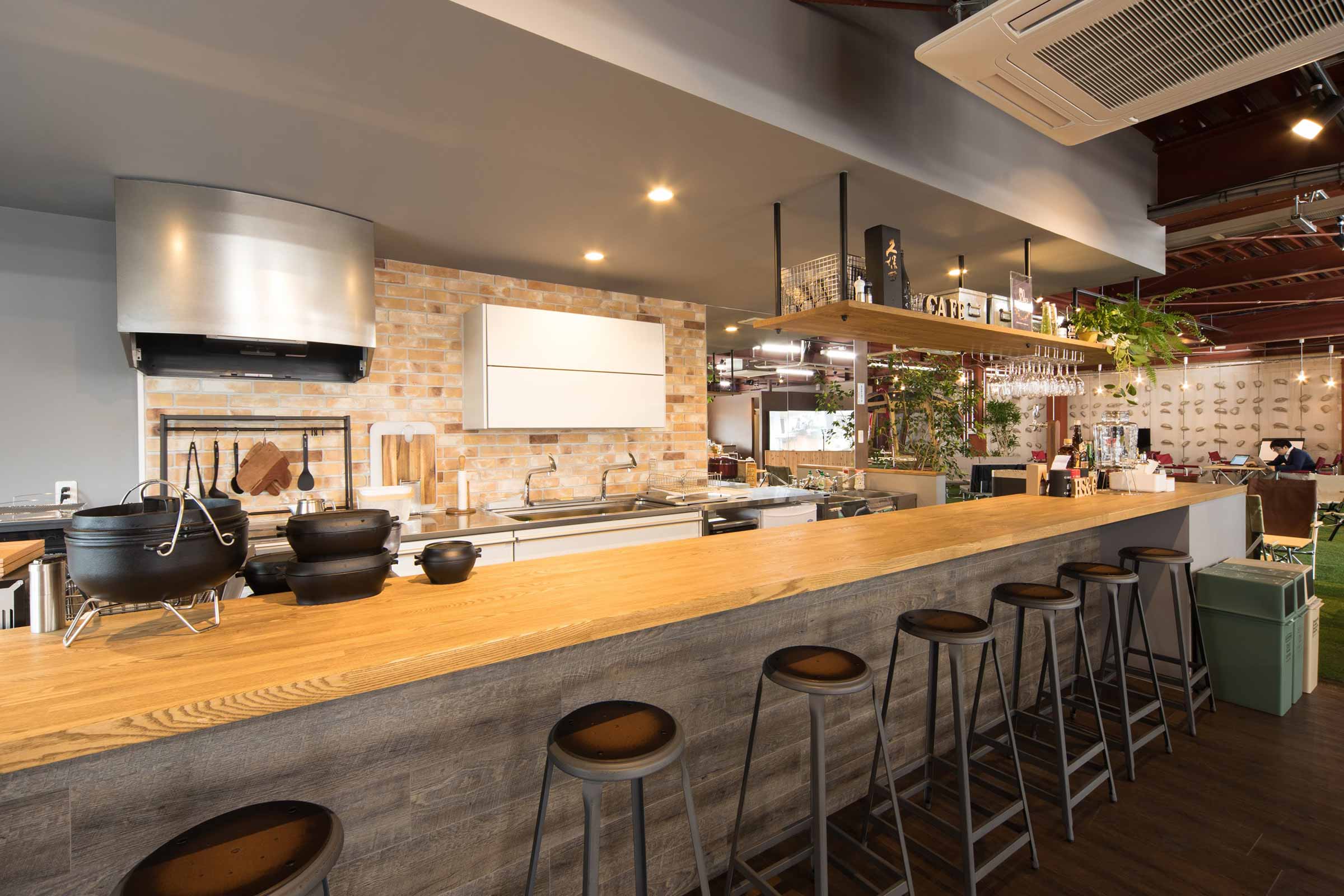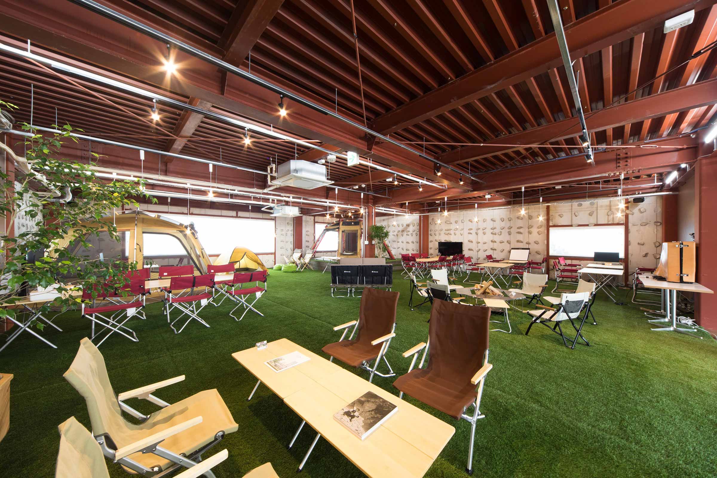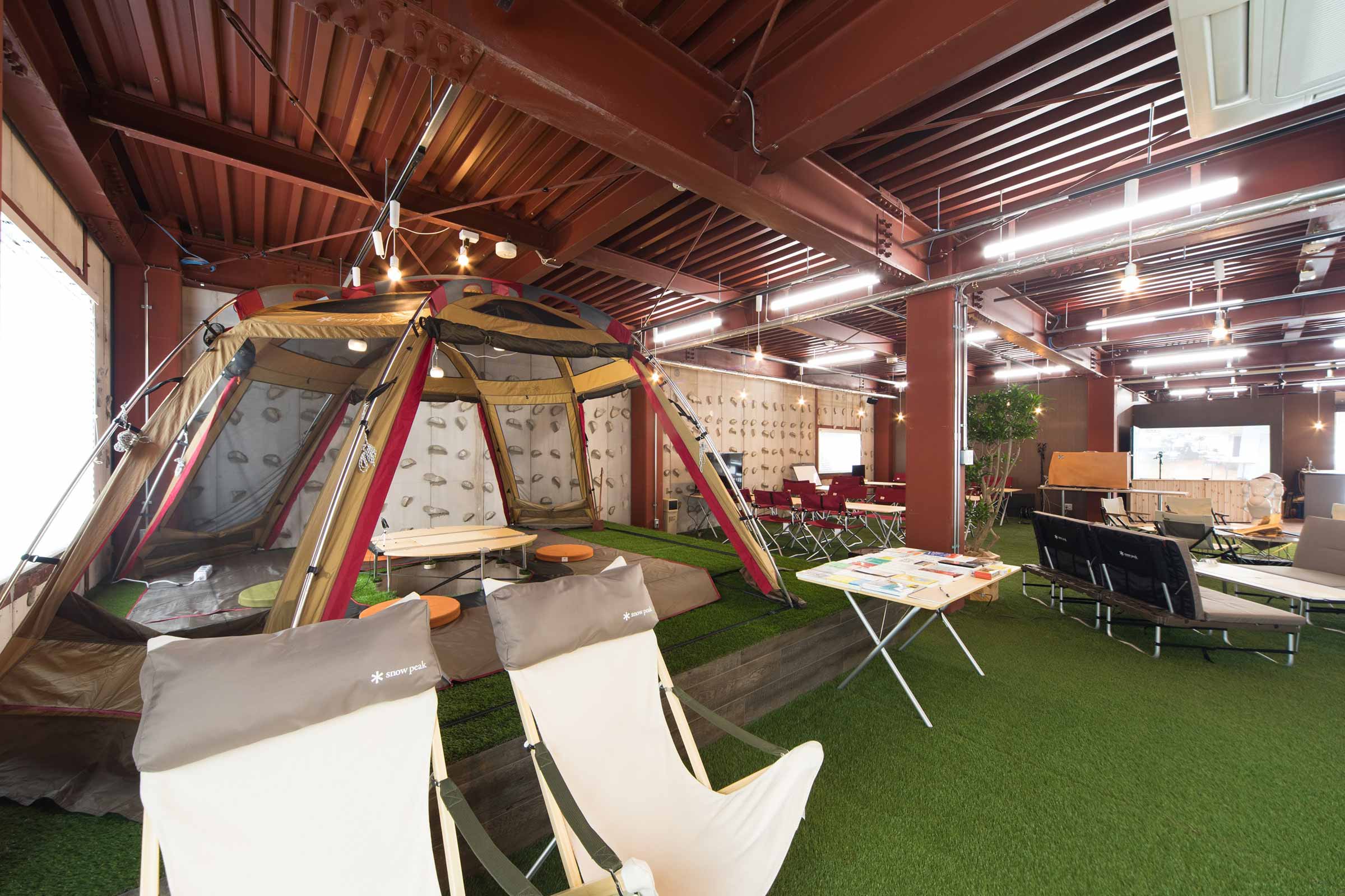岡崎の街に根差したスノーピークビジネスソリューションズ本社に併設し、社員を介して企業と地域の垣根を越えた交流が生まれます。スノーピーク製品で設えた可変性のある空間で、状況に応じた働く環境を自らつくることで、働くマインドセットにも変化をつけられます。